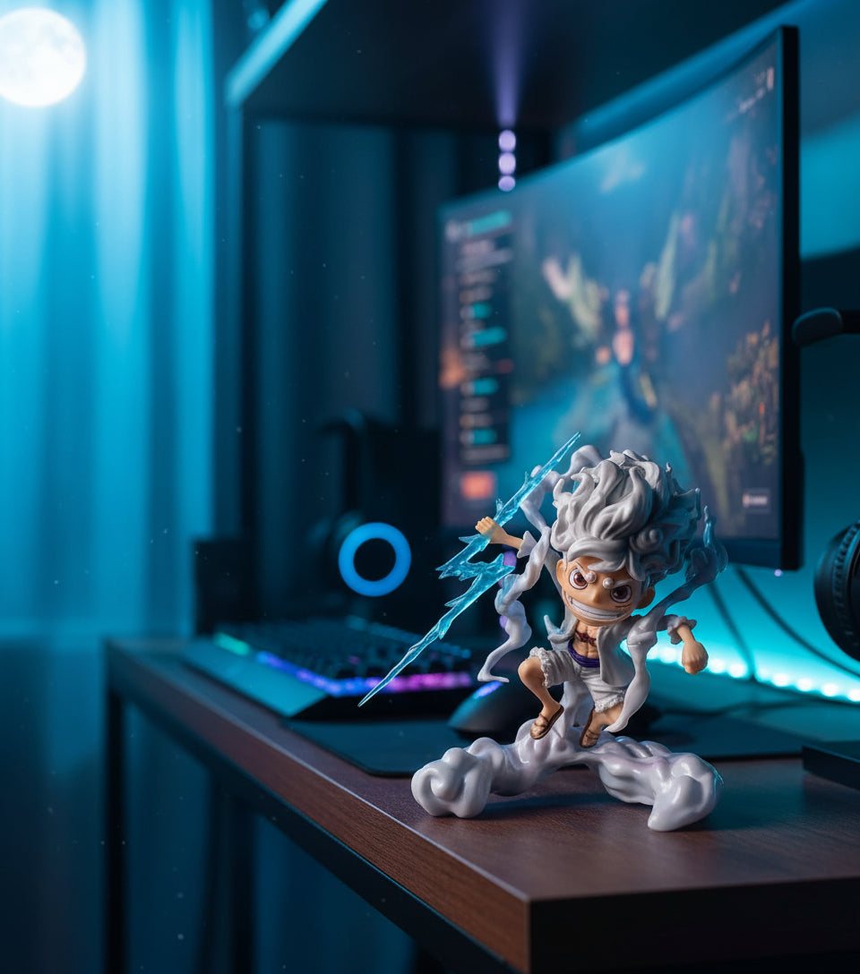 O cativante design Gear 5 exibe detalhes intrincados que farão o coração de qualquer fã acelerar. Seja para iluminar seu espaço ou procurando o presente perfeito para um colega amante de anime.